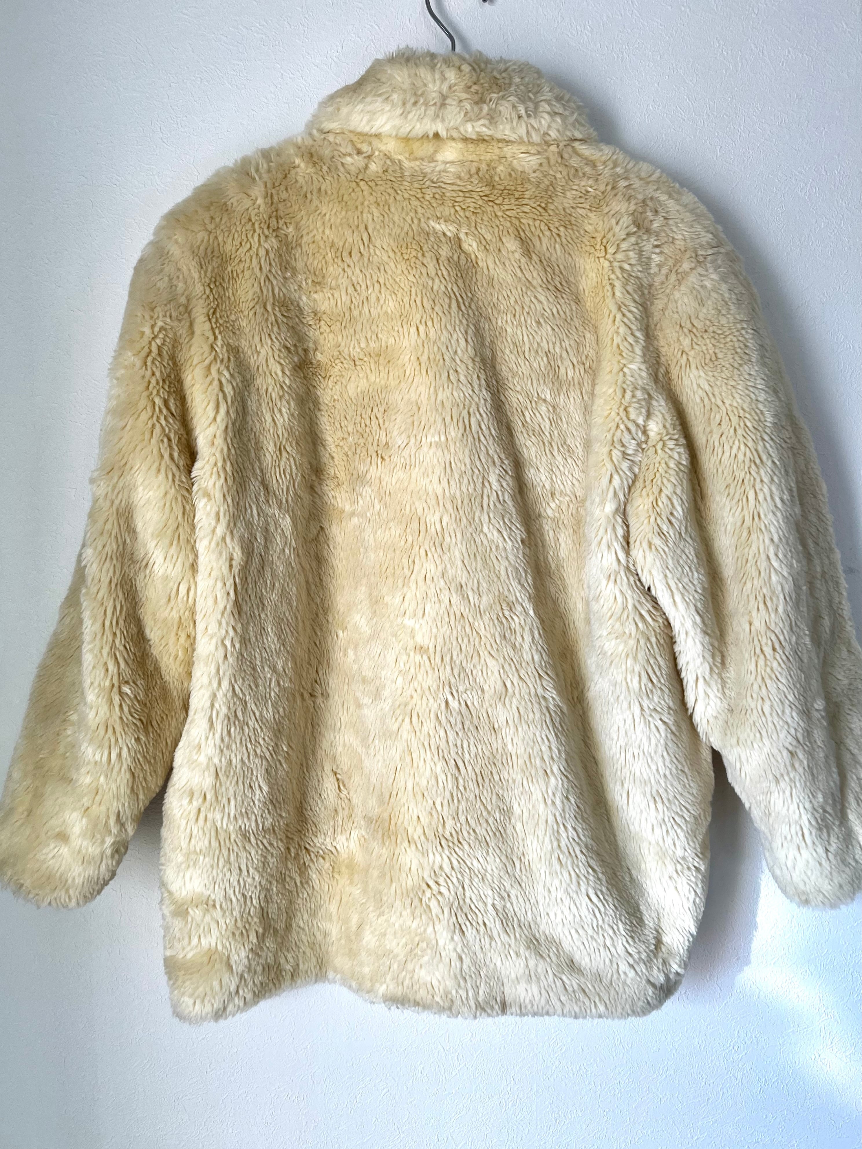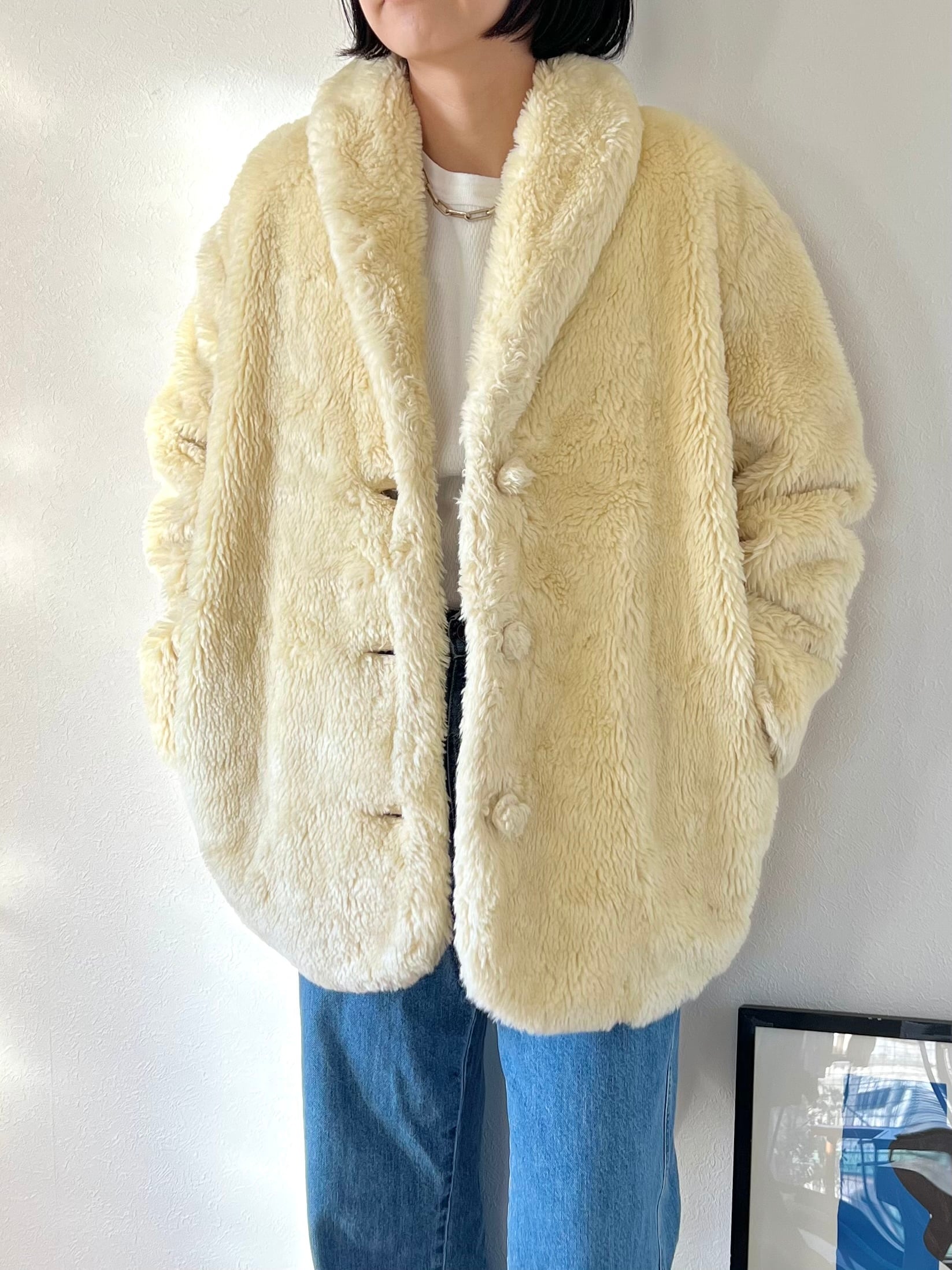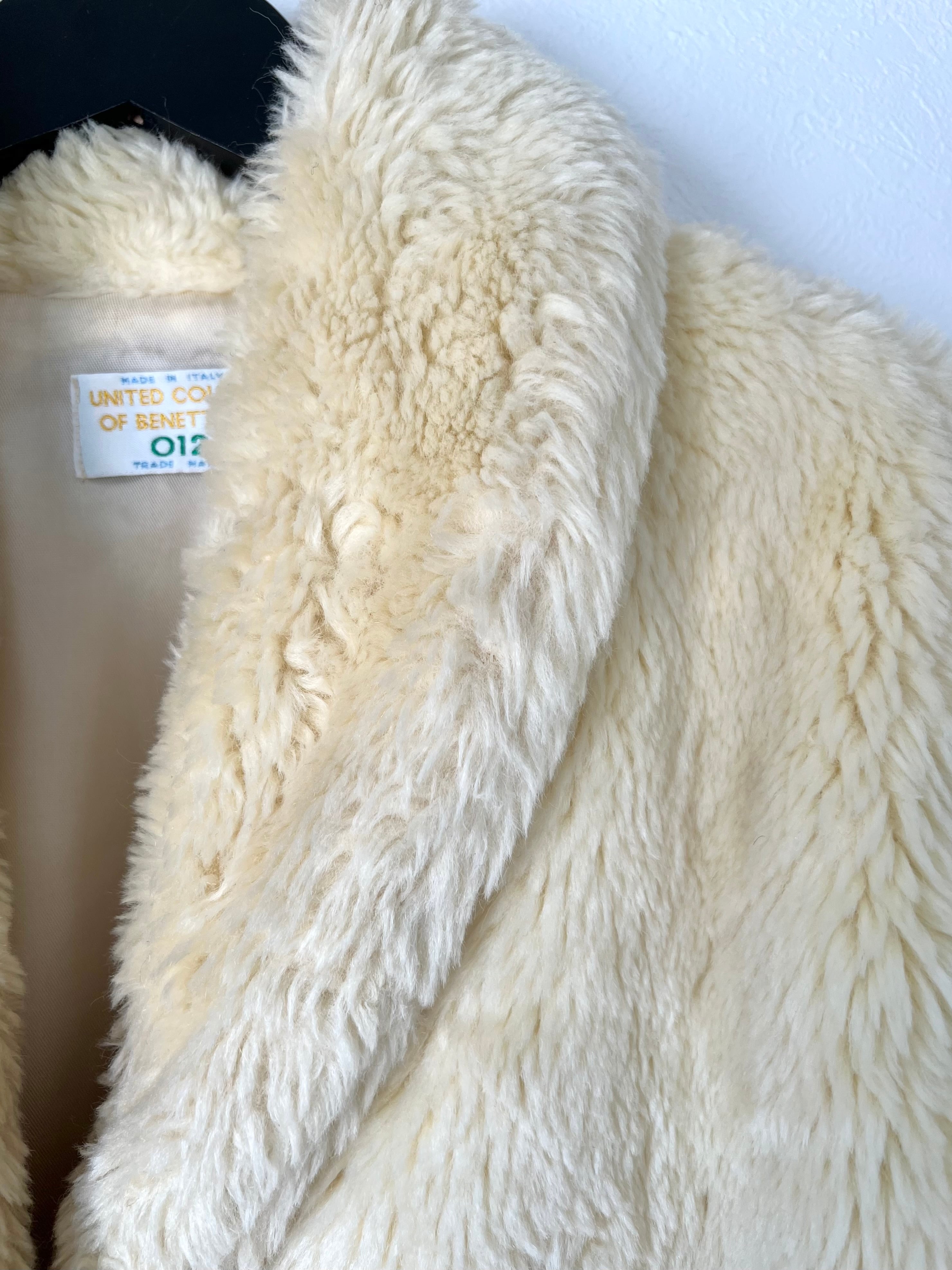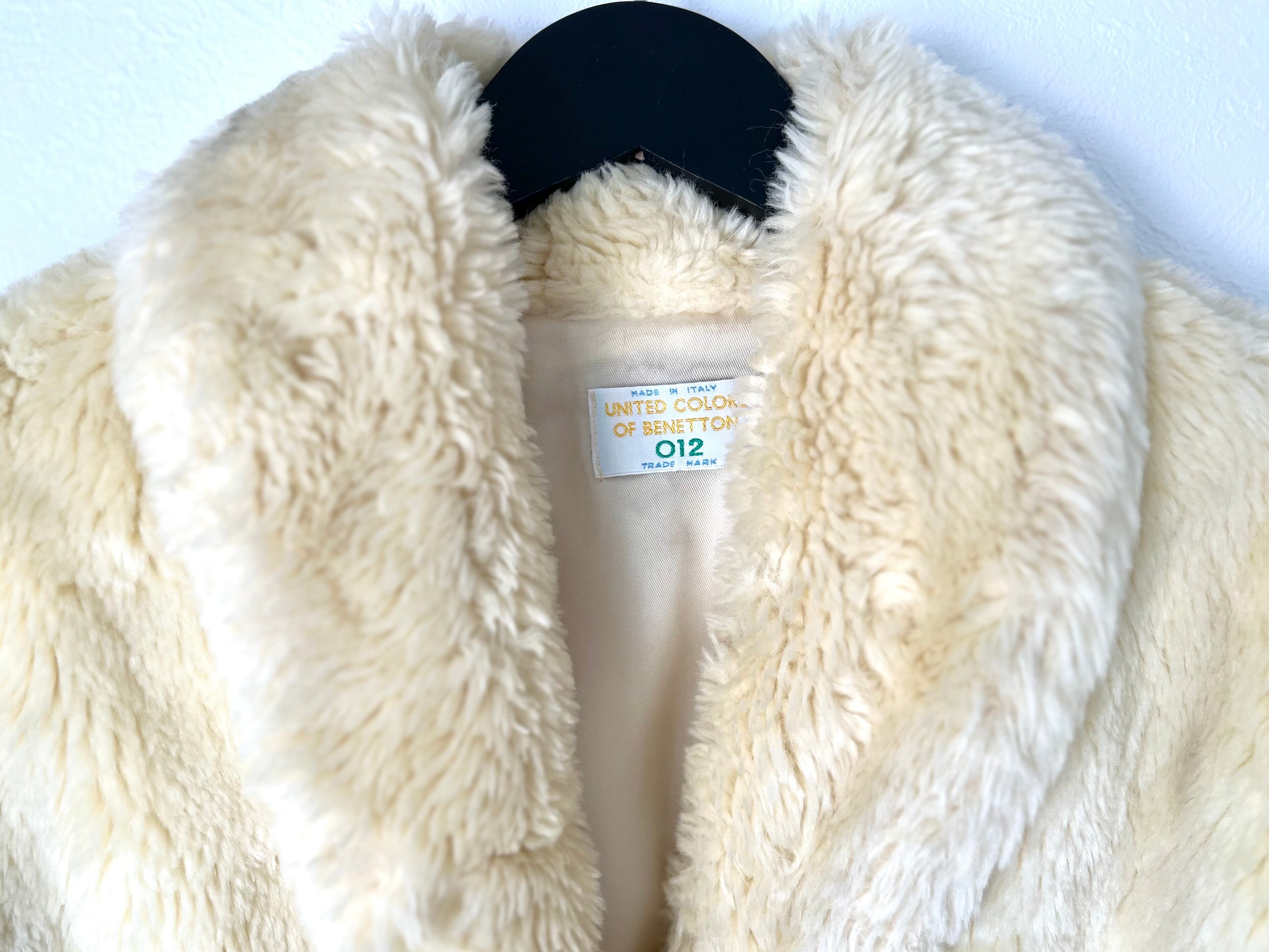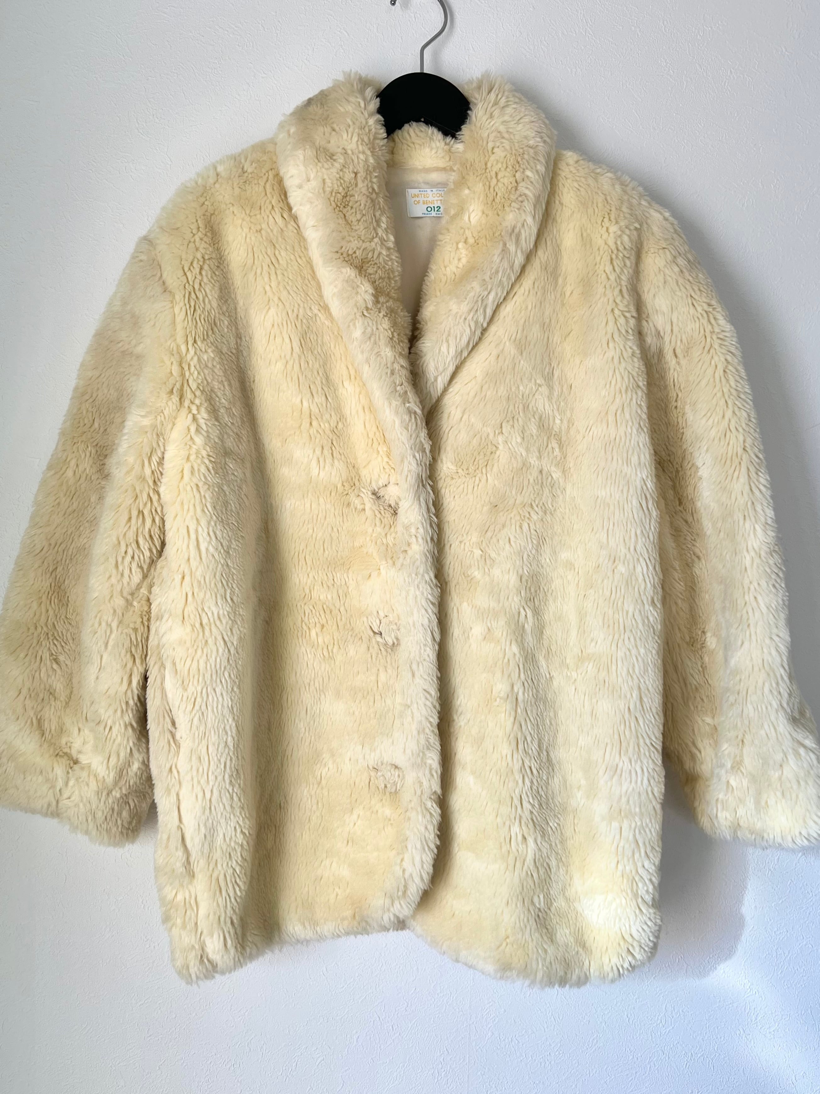 イエローみのあるクリームカラーが綺麗なイタリア製BENETTONのフェイクファーコート。