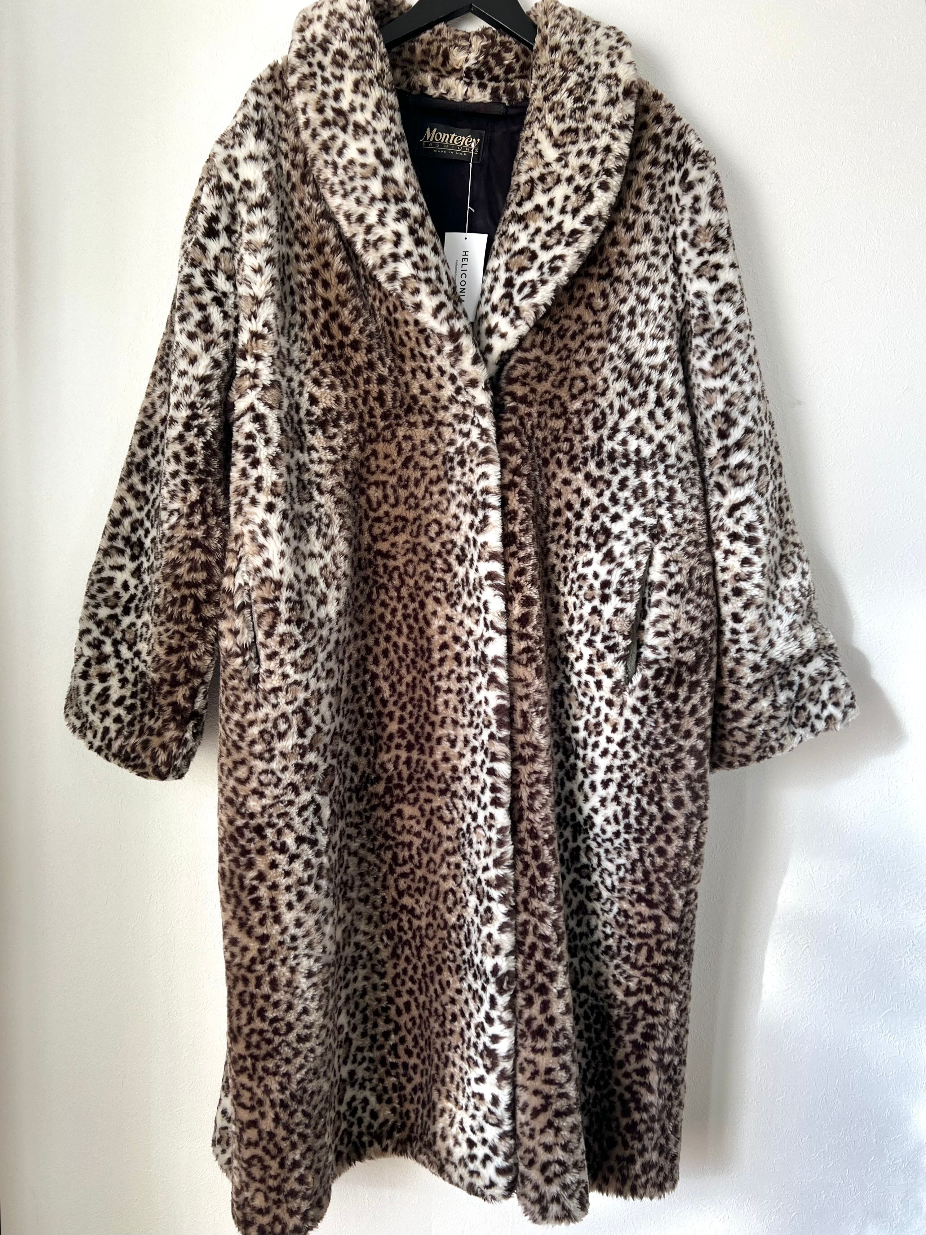 80's USA faux fur leopard coat