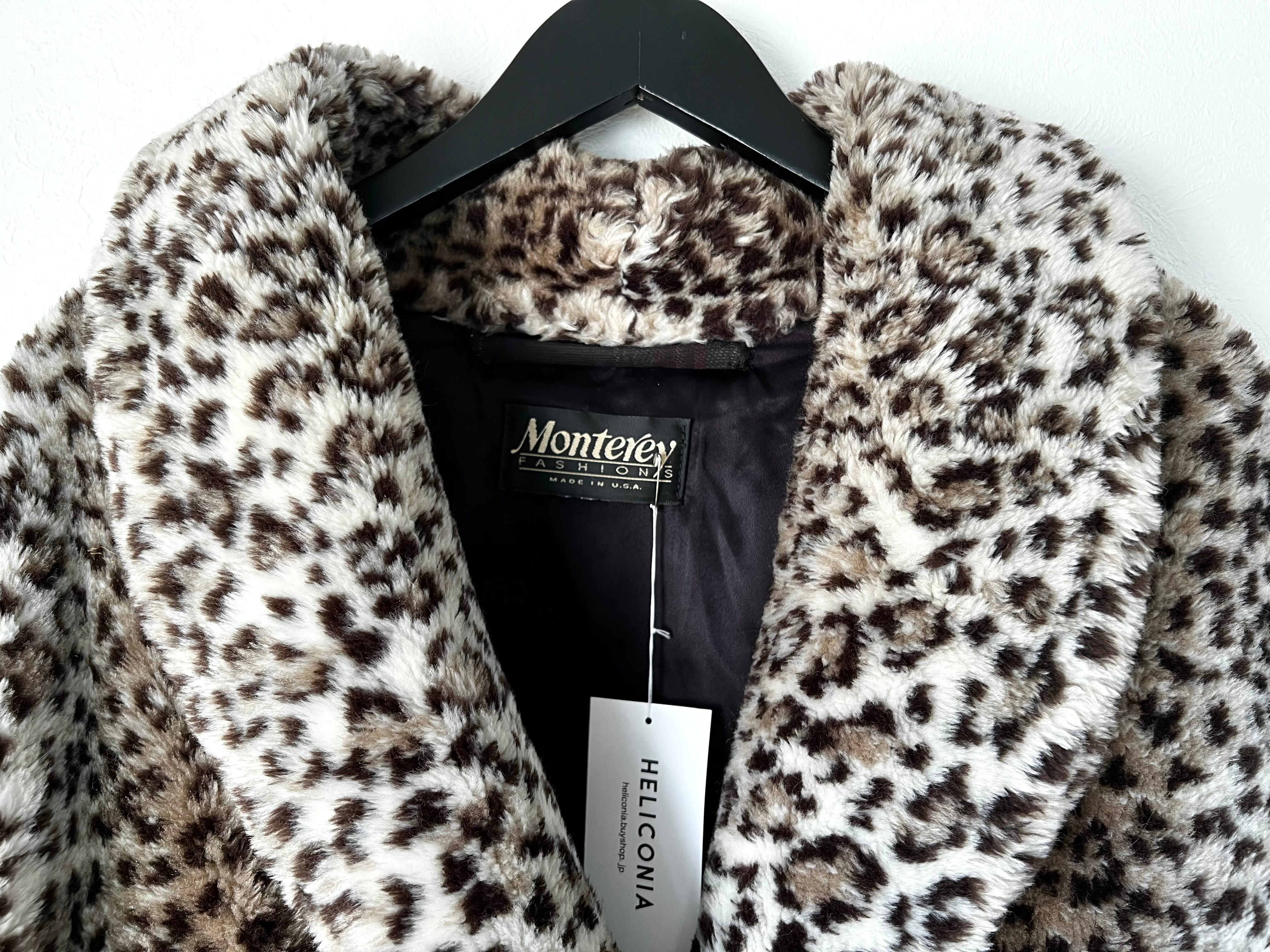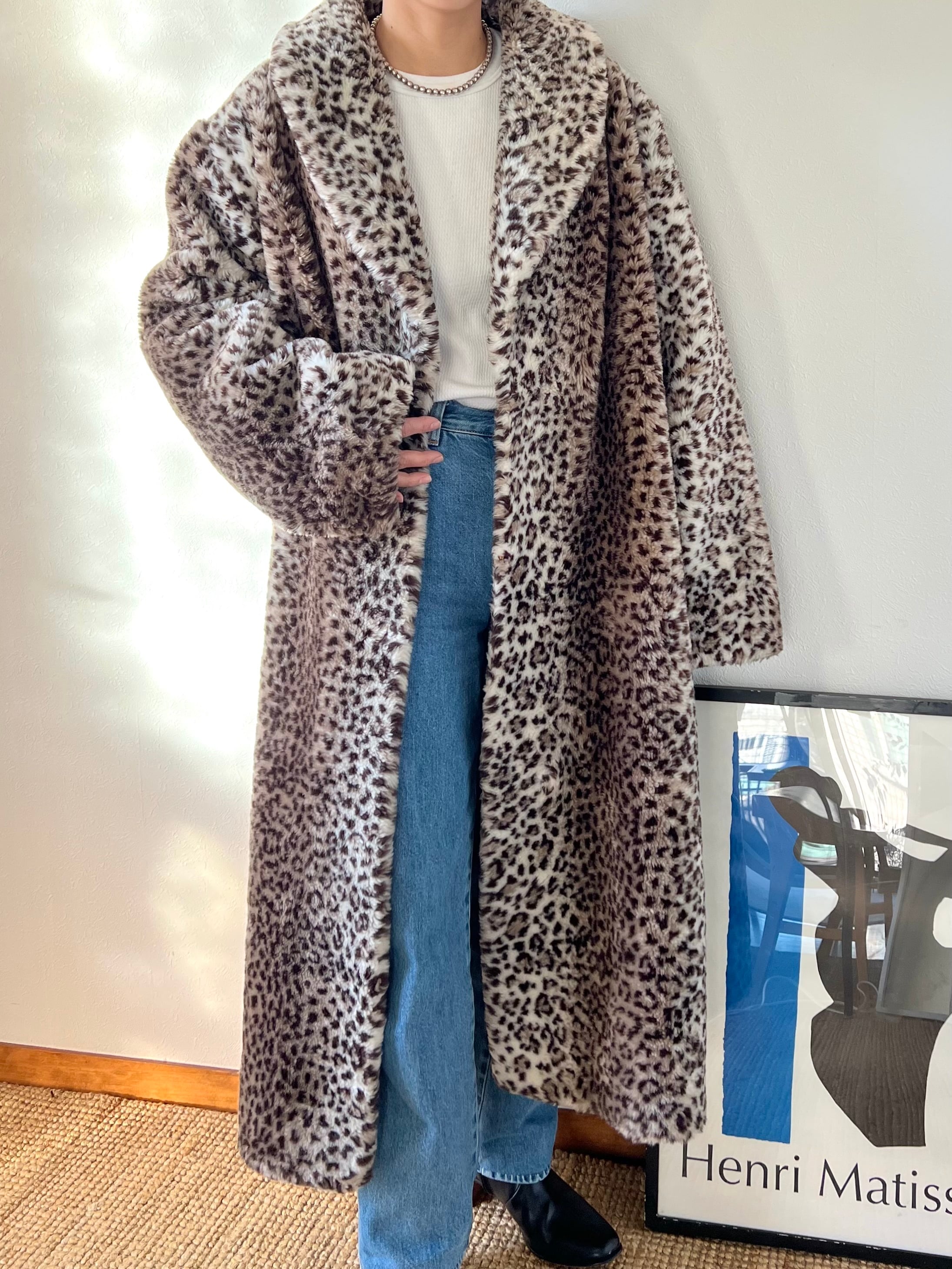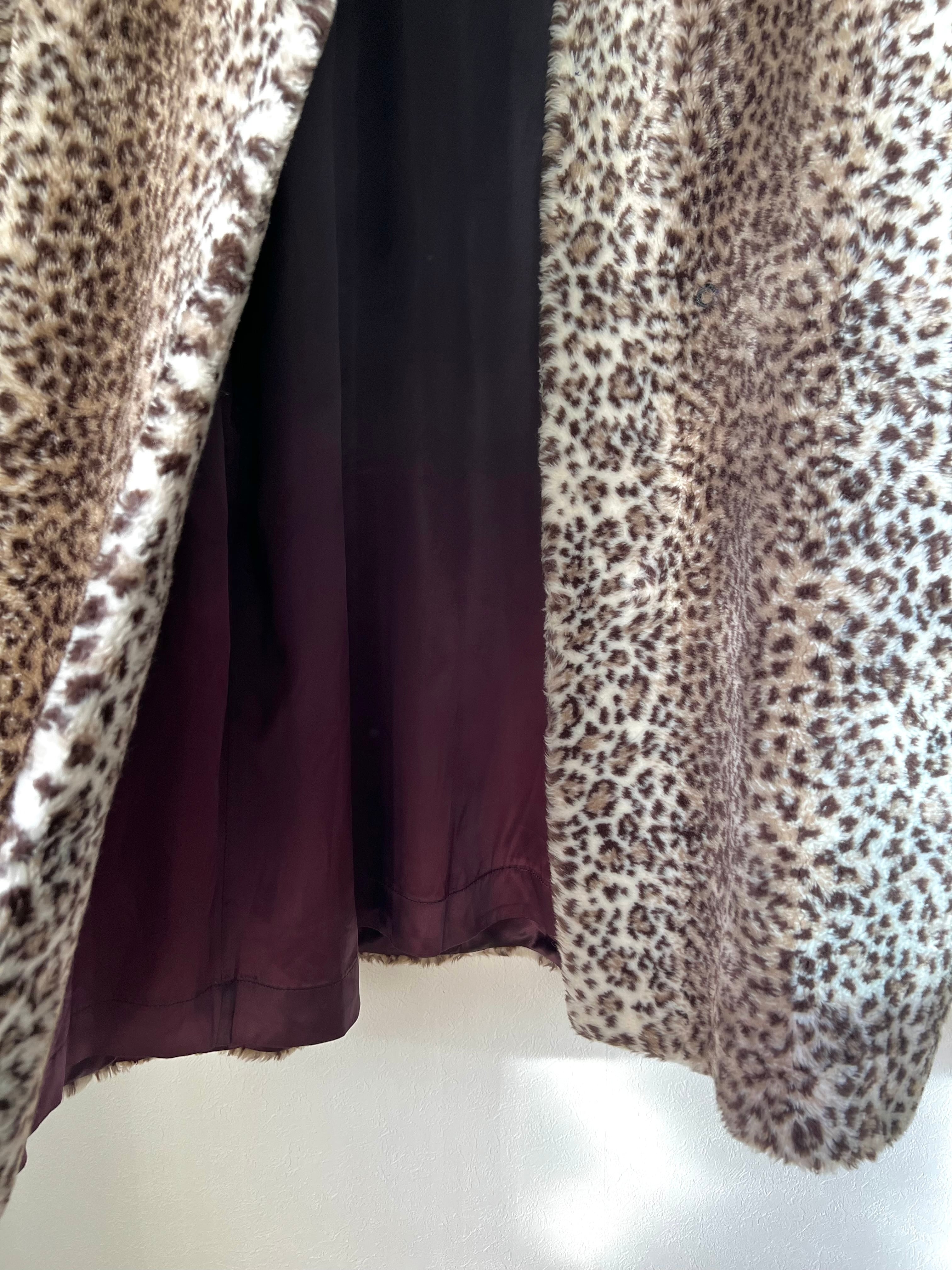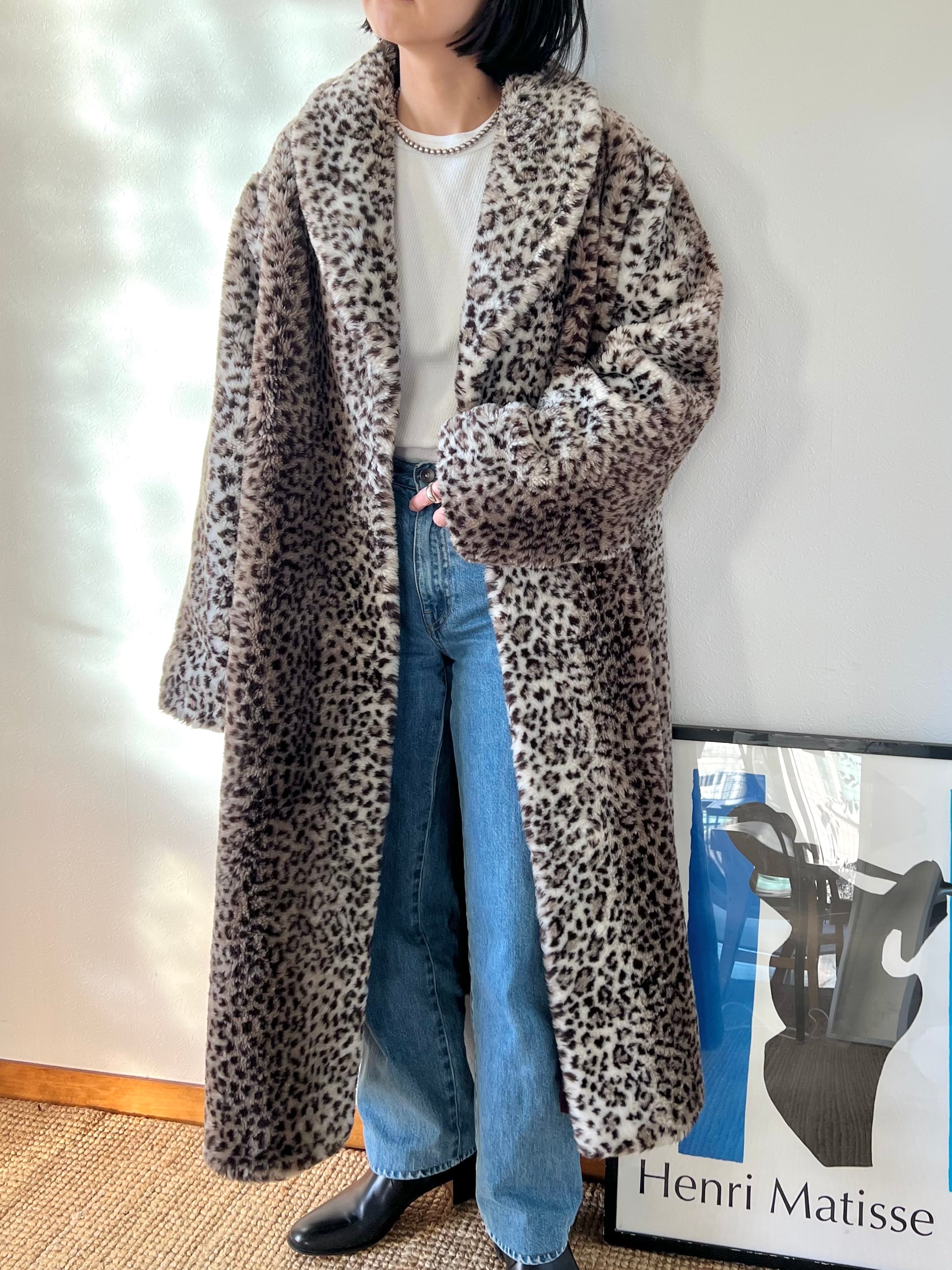 ボリュームのあるレオパード柄のフェイクファー素材が可愛い80年代のUSA製ロングコート。